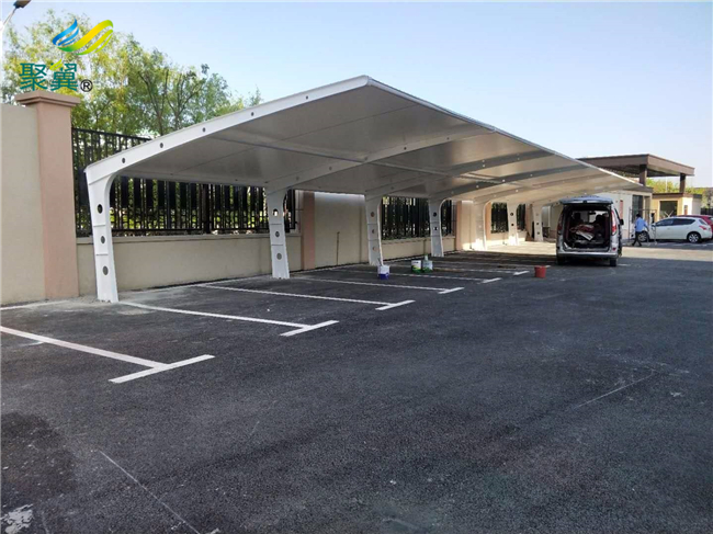 第三點,膜結構停車棚內部采用Φ38鍍鋅圓管與車棚框架焊接,加強棚頂部強度,可讓棚內感覺寬敞明亮,停靠車輛輕松方便,完全符合停車棚制作要求規范;