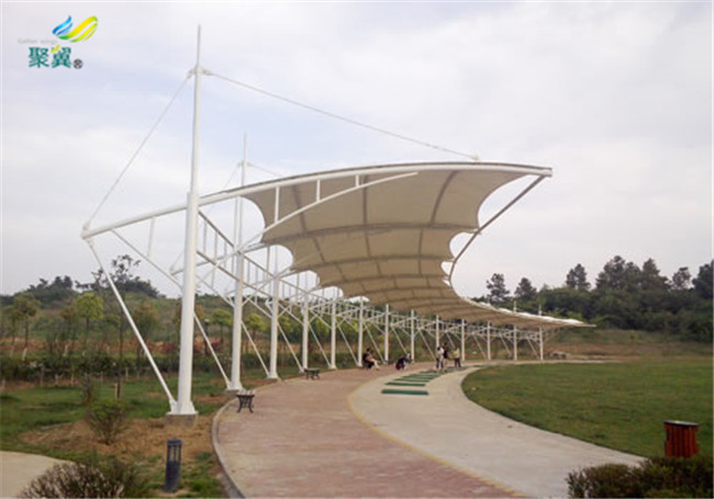 不管是做哪種車棚我們都須要保證原材料之間的連接合理、美觀,車棚的節點構造應符合國家標準。對金屬連接件應采用可靠的防腐蝕措施,須要考慮節點構造偏心對拉索、