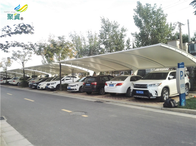 膜結(jié)構(gòu)車(chē)棚在焊接時(shí),有必要在兩片膜間加一層PFA或FEP作為助焊劑。