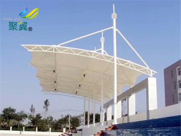 膜結構看臺是膜結構材料近年來應用的一個新領域,膜結構建筑能很好的籠罩全部的看臺,膜結構的張拉樣式使得建筑的空間跨度變的更大,同時能縮小建筑的結構,建筑的整體重量減輕,這樣施工就會變的簡單安全。這些都是膜結構被廣大用戶選擇的關鍵因素。膜材的表面都有一種涂層,涂層是為了預防灰塵雨水的影響,起到保護膜結構使用年限的作用。