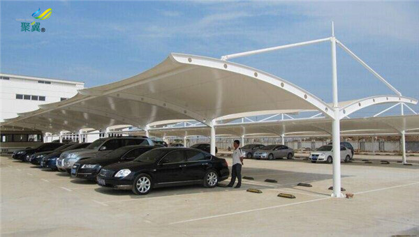 膜結(jié)構(gòu)汽車停車棚景觀棚采用高強(qiáng)度材料,一般要求高技術(shù)才能完成,除了結(jié)構(gòu)強(qiáng)度外,其整體重量相對(duì)較輕,在極端惡劣的天氣下也不必?fù)?dān)心被車輛破壞和損壞