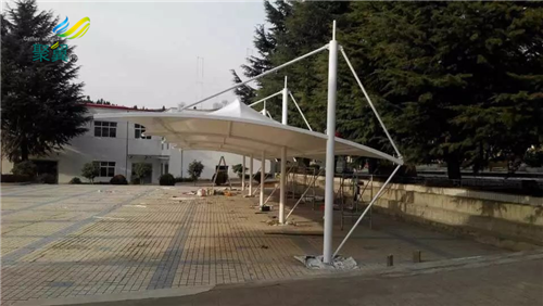 景觀張拉膜能提供豐富多彩的用途,并與園林景觀溶為一體。創(chuàng)造出讓人們盡情享受的快樂空間。充分展示了結(jié)構(gòu)構(gòu)件清晰受力的藝術(shù)之美,它巧妙的整合周圍的環(huán)境,給人們一種高貴典雅、浪漫溫馨之感。