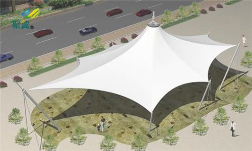 膜結構建筑的支撐一般為鋼結構,國內對于鋼結構的保護多采用涂防火涂料。國外類似建筑大多是不涂防火涂料的。還有一種更為穩妥的辦法:就是在構造上作處理,使膜面緊貼在鋼索下面,火災中煙氣首先面對的是膜面,這樣鋼索下面又多了一個保護層,使鋼架不受任何高溫作用。