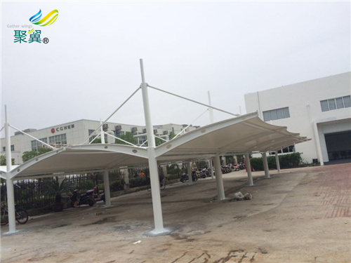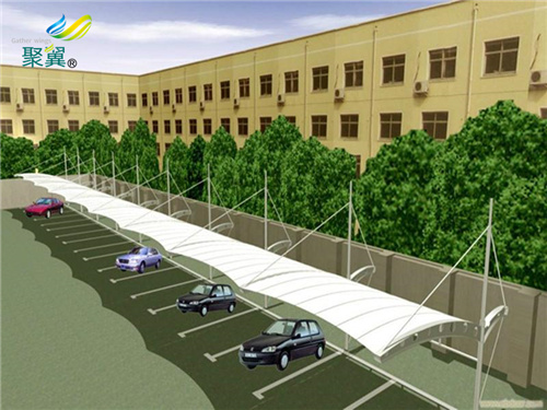 膜結(jié)構(gòu)車棚除了藝術(shù)性和獨(dú)特性之外,它的實(shí)用性也不得不提,這歸功于膜結(jié)構(gòu)車棚的材料的特殊性,膜結(jié)構(gòu)車棚的主要材質(zhì)是膜材,特別的性質(zhì)是強(qiáng)度比較高、經(jīng)久性比較好、阻燃性比較強(qiáng)、自潔性也比較好,不受紫外線的影響,可以使用很久,重要的是它既保護(hù)車不被紫外線侵害,同時(shí)還透露進(jìn)一定的陽光使得車棚內(nèi)不會(huì)太過于潮濕,保持一個(gè)干燥的環(huán)境。由此可見,膜結(jié)構(gòu)車棚會(huì)逐漸代替現(xiàn)有的傳統(tǒng)的停車棚。