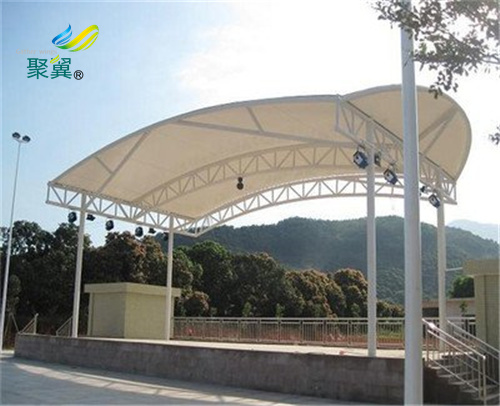 膜結構是一種新型材料,具有藝術性,經濟性,保溫性,自潔性,防火性,吸音性和透光性。空間膜結構運用于體育看臺能更好的體現膜結構的這一特性。體育看臺膜結構比傳統看臺相比,具有造型優美,空間跨度大,自重輕,使用年限時間長等特點。