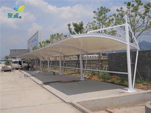 膜結構車棚的修建是在國內現是已十分盛行且是常見的。從大大小小的廣場是到現在的城市標志性的修建,包含是許多咱們的像不能是占用許多當地的需求遮陽的場所,通常都是有膜結構的車棚修建的身影,但眾所不知的是,膜結構的車棚資料的稀缺則是讓這一簡便、節能的新式修建資料一時無法很多遍及。膜結構車棚具有十分良好的承載功能,能以是很小的厚度接受相當大的荷載。膜結構車棚的強度是和剛度主要的是使用了其幾許形狀的合理性,是以資料直接是受壓來替代曲折內力,然后是充分的發揮資料的潛力。因此的膜結構車棚是一種強度高、剛度大、資料省的即經濟是又合理的一些構造方
