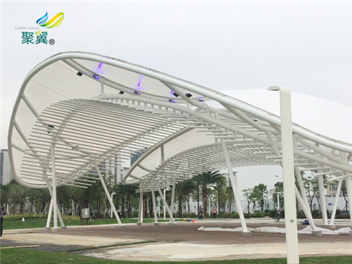 3.更大跨度的建筑空間由于自重輕,膜結構可以說是一種非常優異的新型建筑材料,其廣泛應用于各種出入口工程,可以不需要內部支撐面,大跨度、商業頂棚、景觀棚,使用壽命可以達到15年以上,可以說作為出入口材料具有天生的優勢。覆蓋空間,這使人們可以如果排除人為破壞可以說膜結構出入口工程基本沒有缺 點,更加靈活使用膜結構建筑。