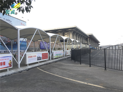 膜結構停車棚,家附近的公交站點同樣也是膜結構材質的,其中較為顯著的一個特點就是公交站臺,,以前的公交站臺大多數是完全沒有任何遮擋的,一到下雨天或者下雪天,大家只能被淋濕,有的公交站臺還會有鋼鐵材質的遮陽棚,但是這種遮陽棚的缺點就是導熱,而且經過了一段時間的風吹雨淋極容易生銹,隨著科技的發展,現如今公交站臺使用膜結構材質的遮陽棚越來越多,那么這種材質的遮陽棚有什么優勢呢?