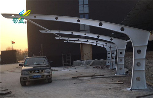 膜結(jié)構(gòu)停車棚工程形式為張拉式形式,其膜面則是直接固定在鋼結(jié)構(gòu)支架上,安裝的過程就是膜面張拉的過程,膜面安裝完成后應(yīng)達到受力要求。