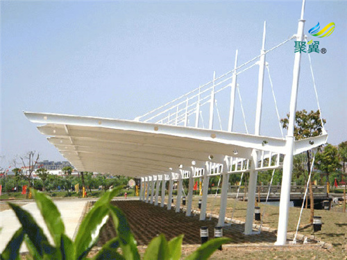 4、接地效果接地效果的好壞也是防雷平安的重要保證,對每個建筑物都要思索采用哪些接式及電位散布的陡度較小并應盡可能到達平衡電位的條件,接地安裝要適用、耐久;同時要到達規則接地電阻的請求,車棚膜結構廠家批發,膜構造建筑常采用根底鋼筋作自然接地體,通常采用結合接式,請求接地電阻<1Ω。