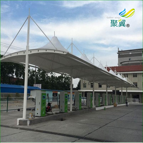膜結構充電樁車棚可以保護我們的車輛,還具有觀賞價值。目前,在我們的生活中有不少的朋友喜歡建設這類膜結構充電樁車棚。