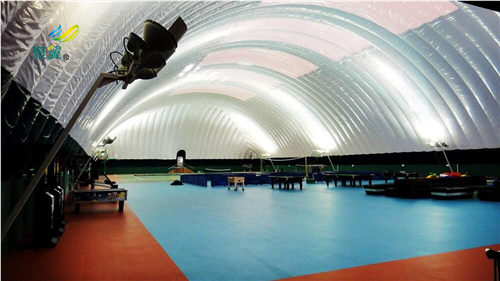 充氣膜結構將膜材料固定在屋頂結構周圍,利用送風系統將室內空氣壓力提高到一定壓力,使屋頂內外壓差,抵抗外力,由于采用氣壓支承,以鋼索為輔助材料,不需要任何梁、柱支承,可有較大的空間,施工速度快,經濟效益好。越來越高,但需要保持風機24小時運行,在連續運行和機器維護成本都較高。