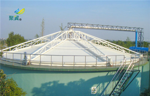 膜結構污水池加蓋廢氣處理的排放工藝原理是在污水池中加入覆蓋層。此時,在空氣中,屏蔽面增加空氣中的排氣出口,在廢氣凈化塔中安裝通風管和排氣管,在氣體收集和凈化塔前安裝玻璃鋼風扇。風機將廢氣凈化塔吸入,佳能的廢氣兩級噴霧,如果酸性廢氣通過堿循環吸收,如果廢堿循環噴霧吸收,廢氣處理效率在90%以上,達到相關排放標準。膜結構污水池加蓋廢氣處理是在水箱上加蓋玻璃鋼保護罩。玻璃增強塑料具有質量高、強度高、耐腐蝕、施工方便等優點。