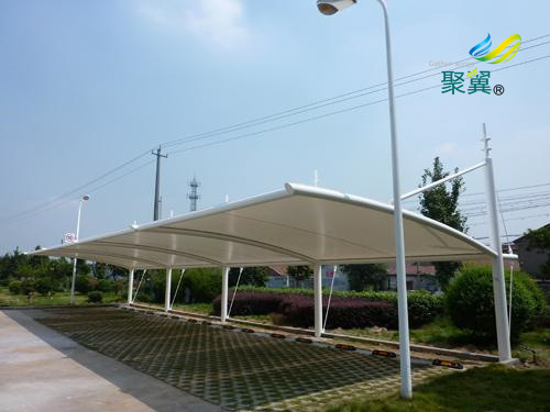 1.PVC膜材(PVC-Coated Polyester):PVC膜材在材料及加工上都比PTFE膜便宜,且具有材質(zhì)柔軟,易施工的優(yōu)點。但在強度、耐用年限、防火性等性能上較PTFE膜差。PVC膜材是由聚脂纖維織物加上PVC涂層(聚氯乙烯)而成,一般建筑用的膜材,是在PVC涂層材的表面處理上,涂以數(shù)micron厚的壓克力樹脂(acrylic),以改善防污性。但是,經(jīng)過數(shù)年之后就會變色、污損、劣化。一般PVC膜的耐用年限,依使用環(huán)境不同在5~8年。為了改善PVC膜材的耐侯性,近年來已研發(fā)出以氟素系樹脂于PVC涂層材的表面處理上做涂層,以改善其耐侯性及防污性的膜材。