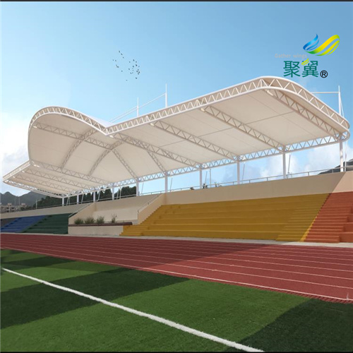 因此很多學(xué)校 或者體育場 都會選擇張拉膜結(jié)構(gòu)的形式來搭建體育看臺,這樣不僅可以保證體育看臺的美觀,還可以達到遮陽 遮雨的效果,后期使用過程中還方便維護,節(jié)省人工成本。