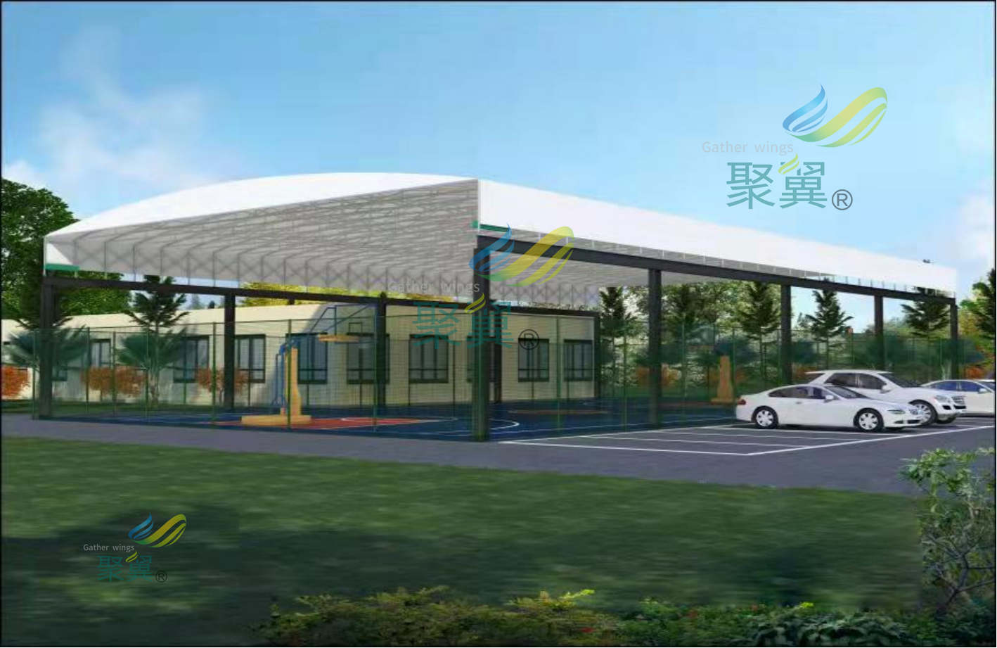 電動推拉棚常用于籃球場、網球場、足球場、門球場、廠房過道遮陽棚、具有隔熱功能,能有效避免日曬雨淋,電動的設計將戶內外融為一體,棚頂可從中間往兩邊打開,或者從一端打開,安裝的是防風輪可以卡在H鋼軌道上,可以有效的進行防風,滾動效果好,可隨時切換室內外模式,靈活自由的掌握內部空間。