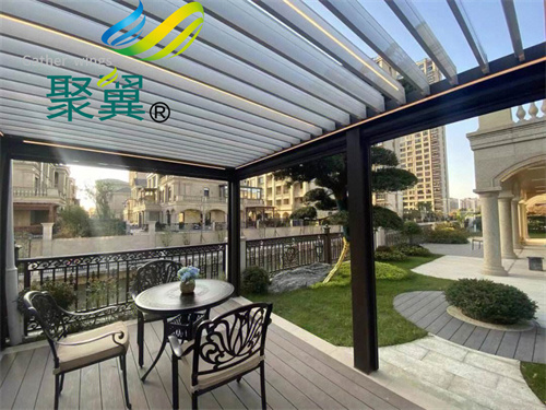 2.頂面采用中空鋁合金葉片,隔熱散熱,精確調(diào)光,搭配LED燈光系統(tǒng),即使夜晚也是風(fēng)景優(yōu)美。