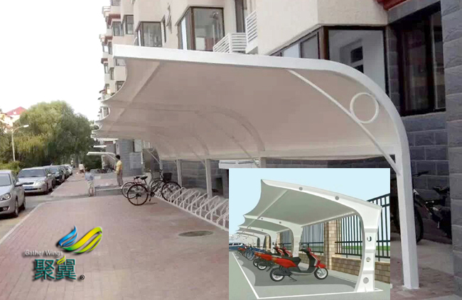 膜結構停車棚和自行車停車棚都屬是車棚,也同樣都是用膜材料產品來制作的,但是他們兩個從名稱和用途上來講是兩個完全不一樣的東西。