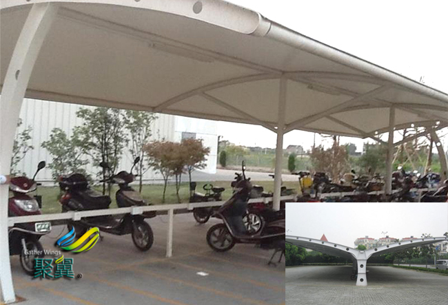 現在的膜結構停車棚大多數都是采用膜結構,膜結構停車棚所采用的原料有很多種,其中主要原料是膜結構停車棚膜材質,那么膜結構停車棚的其他原料有哪些呢?膜結構停車棚還包括膨化PTFE建筑膜材、ETFE建筑膜材、玻纖PVC建筑膜材、玻纖有機硅樹脂建筑膜材、玻纖合成橡膠建筑膜材。玻纖有機硅樹脂膜結構停車棚建筑膜材具有機硅樹脂具有優異的耐高低溫、拒水、抗氧化等特點,該膜材具有高的抗拉強度和彈性模量,另外該膜結構停車棚透光性好而且易制作。