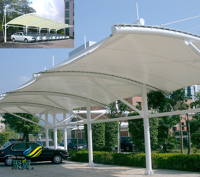 膜結(jié)構(gòu)車(chē)棚在國(guó)外已逐漸應(yīng)用于體育建筑、商場(chǎng)、展覽中心、交通服務(wù)設(shè)施等大跨度建筑中。膜結(jié)構(gòu)車(chē)棚已成為結(jié)構(gòu)設(shè)計(jì)選型中的一個(gè)主要方案。成為化纖紡織品應(yīng)用的一個(gè)重要領(lǐng)域。