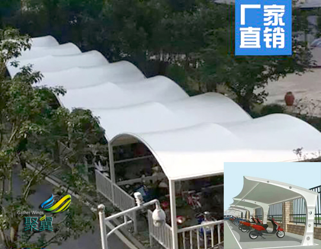 膜結(jié)構(gòu)車(chē)棚中的高強(qiáng)度柔韌薄膜稱(chēng)膜材,膜結(jié)構(gòu)車(chē)棚是一種耐久用、高強(qiáng)度的涂層織物,由織物和涂層復(fù)合而成,膜結(jié)構(gòu)車(chē)棚具有質(zhì)地柔韌、厚度小、重量輕、透光性好的特點(diǎn)。對(duì)自然光吸收和透射能力、阻燃,膜結(jié)構(gòu)車(chē)棚具有良好的耐久、防火、氣密等特性,因此現(xiàn)如今的膜結(jié)構(gòu)車(chē)棚自此以后,膜結(jié)構(gòu)在世界范圍內(nèi)得到了迅猛的發(fā)展。