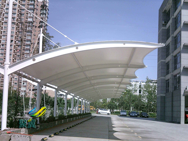 膜結(jié)構(gòu)停車棚自行車車棚最重要的是車棚的材料選擇,膜結(jié)構(gòu)停車棚的搭建要考慮使用年限,抗震抗壓抗腐蝕,防風(fēng)防火等各種問(wèn)題,所以膜結(jié)構(gòu)停車棚材膜結(jié)構(gòu)停車棚結(jié)構(gòu)形式是由多種高強(qiáng)薄膜材料(PVC或Teflon)及加強(qiáng)構(gòu)件(鋼架、鋼柱或鋼索)通過(guò)一定方式使其內(nèi)部產(chǎn)生一定的預(yù)張應(yīng)力以形成某種空間形狀,上海膜結(jié)構(gòu)停車棚作為覆蓋結(jié)構(gòu),并能承受一定的外荷載作用的一種空間結(jié)構(gòu)形式。
