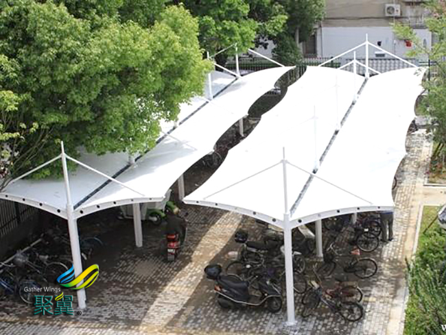 (3)疏散標(biāo)識,因為大型膜結(jié)構(gòu)車棚膜結(jié)構(gòu)的建筑空間大,離地距離大,地面人群無法識別屋面設(shè)置的標(biāo)識,因此,建議類似機(jī)場候機(jī)樓登機(jī)導(dǎo)向牌,在地面上樹立指示導(dǎo)向標(biāo)識。  (4)膜結(jié)構(gòu)車棚的環(huán)邊,結(jié)構(gòu)落地位置,或膜邊界落地位置,須設(shè)置足夠的消防滅火設(shè)施。