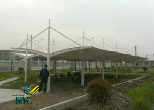 膜結構車棚在我們的生活中是隨處可見的,現在已經普及農村的各個村莊,各種各樣的形狀給城市和農村都添加了不少別樣的風景,今天我們上海聚翼為了更好的讓大家使用,我們特意為您準備了一篇關于膜結構車棚的生產注意事項,讓大家能夠真正的了解它的一舉一動。膜結構車棚整體骨架使用壓條鉚接進行固定,可以經得起酸、堿的腐蝕作用,強度很大,安全系數高。