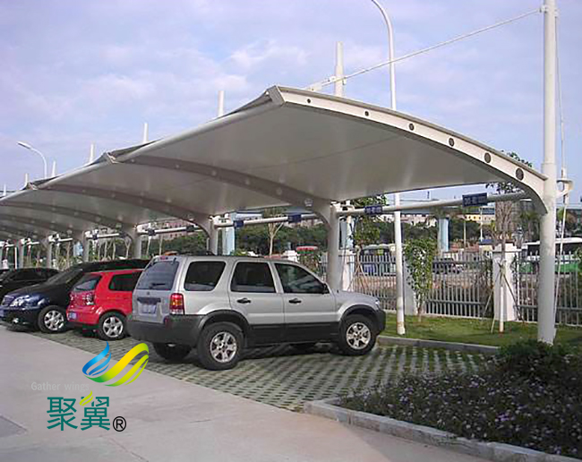 有的膜結構車棚采用永久性膜材,可使用三、四十年。特別是遇到劇烈的暴風雨天氣,膜結構車棚建筑巍然不動,毫發不損。