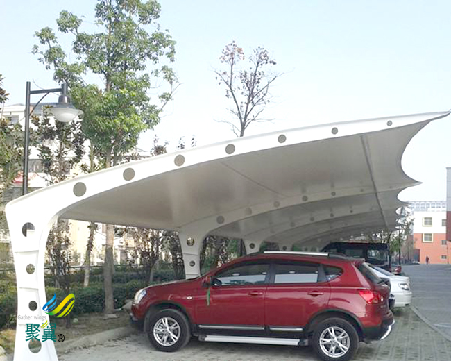 在遇到危機(jī)事端時(shí),通過健壯的抗沖擊性,下降車輛的碰擊丟掉。再次,規(guī)劃漂亮,膜結(jié)構(gòu)車棚具有裝修性。除了實(shí)踐成效外,現(xiàn)在的車棚規(guī)劃越來越尋求視覺作用,如同藝術(shù)品相同,讓人享用美感。尤其是膜結(jié)構(gòu)車棚跟鋁合金車棚,曲線愈加柔美,造型豐盛多樣。