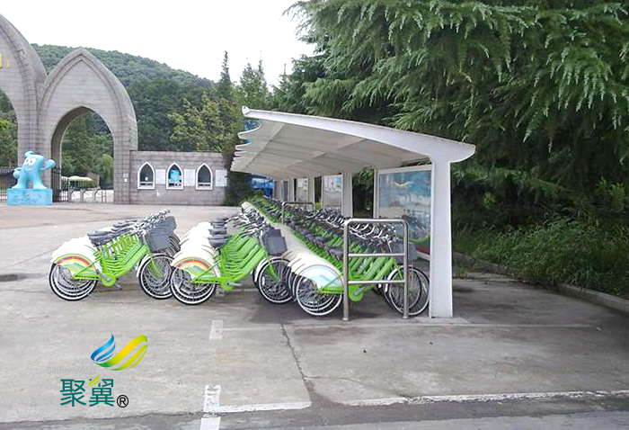 聚翼杭州膜結構車棚停車棚遮陽雨棚靚麗色彩,顏色可根據環境和客戶需求選擇,遮陽功能齊全,;車棚安裝設計技術創新,設計科學,可按需求,地面尺寸定制;遮陽防雨棚滿足百姓需求,靚麗城市風景。