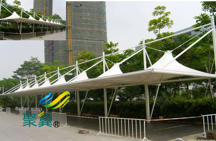 4、上海聚翼景觀膜結構車棚膜表面不宜長時間堆放異物如鐵件、化學物品或其它帶顏色的材料等。