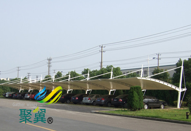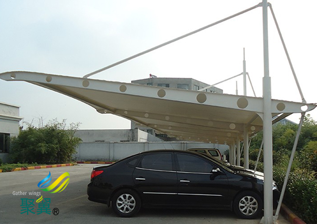 膜結構車棚透光性比較好,由于其厚度在1mm左右,在白天可透射比達到20%。經濟性能好,如果采用膜結構,可減少很多成本,其次膜結構車棚搭建時間段,在應用大跨度時就更經濟了。