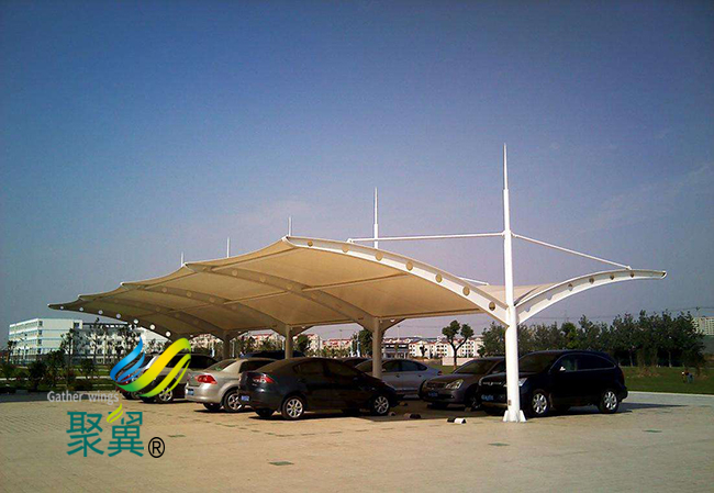 膜結構車棚以其造型輕巧,多變美觀等特點已然成為現如今建筑領域里的新寵,可以說我們的生活周圍處處蕩漾著膜結構車棚所帶來的溫馨氣息。膜結構車棚的安全,環保,阻燃等特性已經令其成為當代城市建筑材料的首選,而膜結構車棚也被稱為二十一世紀的時尚建筑。