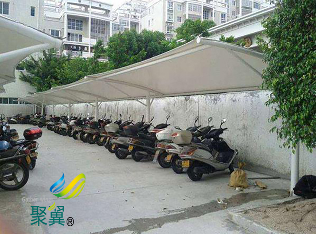膜結(jié)構(gòu)車棚可以利用雨水的自然沖刷來(lái)清潔建筑物的外觀,也可以增加建筑物的使用壽命,膜結(jié)構(gòu)車棚還具有運(yùn)輸方便、比較新并且方便、不易積雪等優(yōu)點(diǎn)。