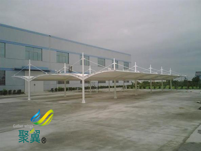 膜結(jié)構(gòu)車棚的比較大跨度可以大于200米。防火膜結(jié)構(gòu)車棚膜材料完全滿足防火規(guī)范的要求,因此在高度和間隙度允許下,膜結(jié)構(gòu)車棚適合于任何一種建筑,通常自動(dòng)滅火系統(tǒng)對(duì)膜材料是適合的,防火設(shè)計(jì)時(shí)應(yīng)從總體考慮。