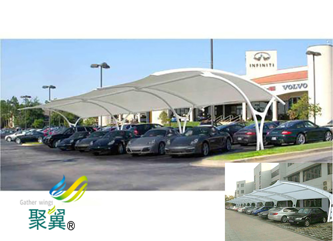 膜結(jié)構(gòu)車棚耐用:由于高強度的膜材出現(xiàn),再加上張拉技術(shù)的應(yīng)用,使膜結(jié)構(gòu)車棚抵御風(fēng)雨的能力是一般雨蓬之類不可比擬的。有的膜結(jié)構(gòu)車棚采用永久性膜材,可使用三、四十年。特別是遇到劇烈的暴風(fēng)雨天氣,膜結(jié)構(gòu)車棚建筑巍然不動,毫發(fā)不損。