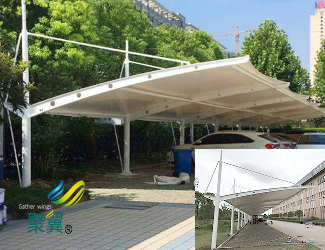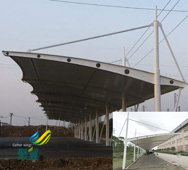 很多制造商在搭建停車棚的時分,經過設計特殊的膜結構車棚部件構造,讓膜結構車棚的部件在裝置的時分,只需求簡單地拼接就可以完成組裝的目的,而且在組裝之后仍能表現出很強的鞏固性和美觀性。膜結構車棚膜構造的支架構造是由高強度構架產生內部的伸拉才能,構成一定的外形,作為掩蓋構造,膜構造膜結構車棚能滿足車輛車風擋雨需求,也能有效的維護車輛起到減緩車輛老化速度的功用。
