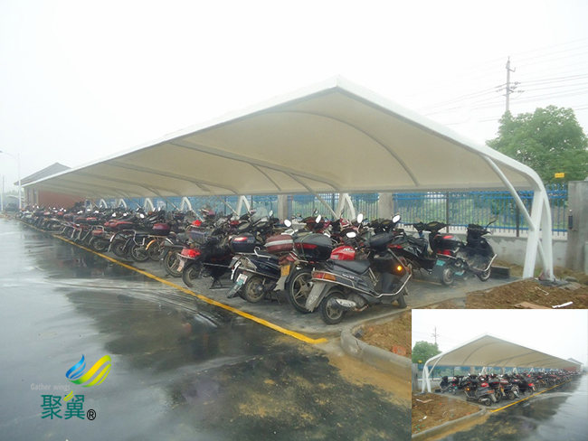 膜結構車棚工程 款式造型可以根據學校園內停車區域設計,老師形象需求設計、合理設計、聚翼提供專業精英設計師團隊為您量身定制,提供(免費)上門測量、設計出案、來圖來樣加工制作、施工承包 、輕包工、完善售后等服務,歡迎來電洽談合作,預約咨詢請撥打(全國統一客服熱線)4008-613-119。
