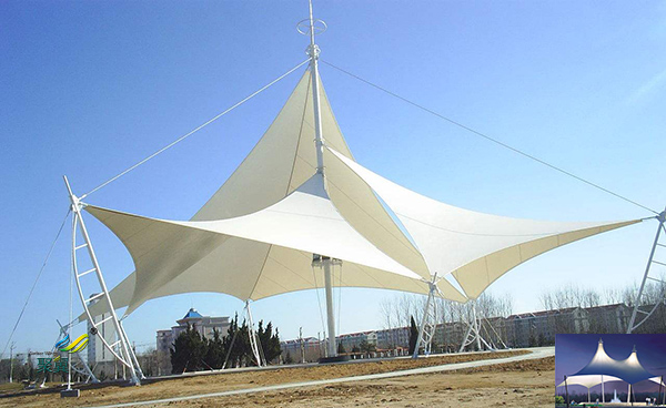 三點,膜結構施工周期短。膜片的裁剪制造、鋼索和鋼結構的制造均在工廠內完結,安徽景觀膜結構在施工現場僅僅鋼索、鋼結構及膜片的銜接安裝及張拉的進程,因此在現場的施工安裝比較方便且安全。
