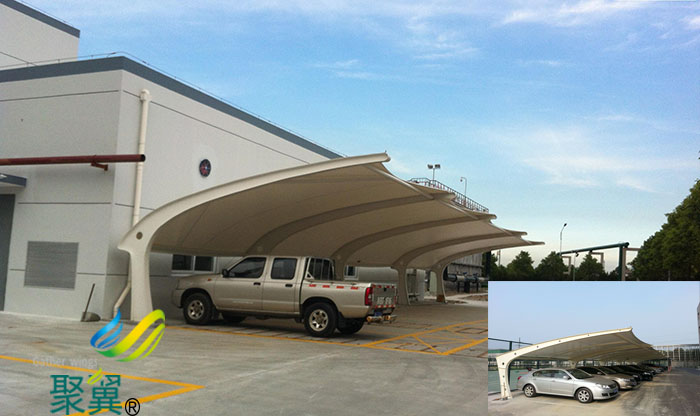 4.膜結構車棚耐久性強—PVDF高強度建筑膜材,膜結構車棚廣泛應用于上海世博園、鳥巢等,壽命長達15-30年;