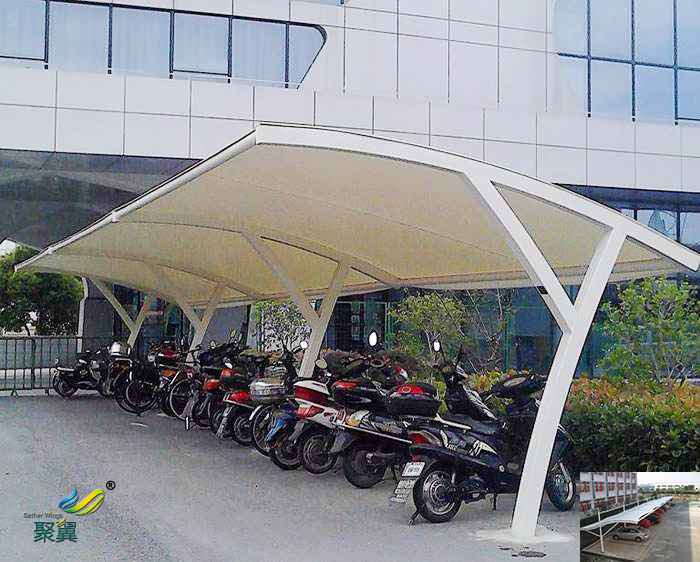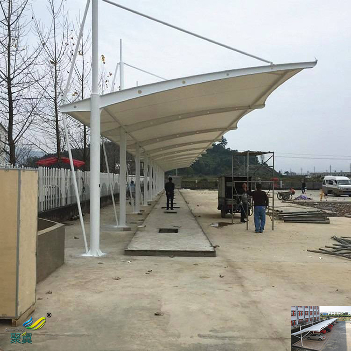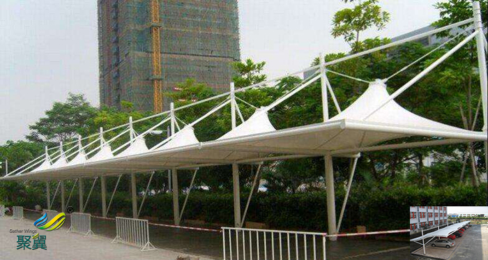 膜結(jié)構(gòu)車棚雖然是采用新型的材料,但是在使用過程中,承受著很大的壓力。因為膜結(jié)構(gòu)車棚的形狀和傳統(tǒng)車棚的形狀不同,膜結(jié)構(gòu)車棚的抗壓能力是靠膜表面不同的形狀要實現(xiàn)的,這也就是為什么膜結(jié)構(gòu)車棚有各種各樣的形狀了。