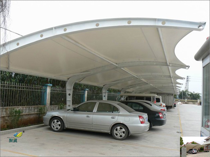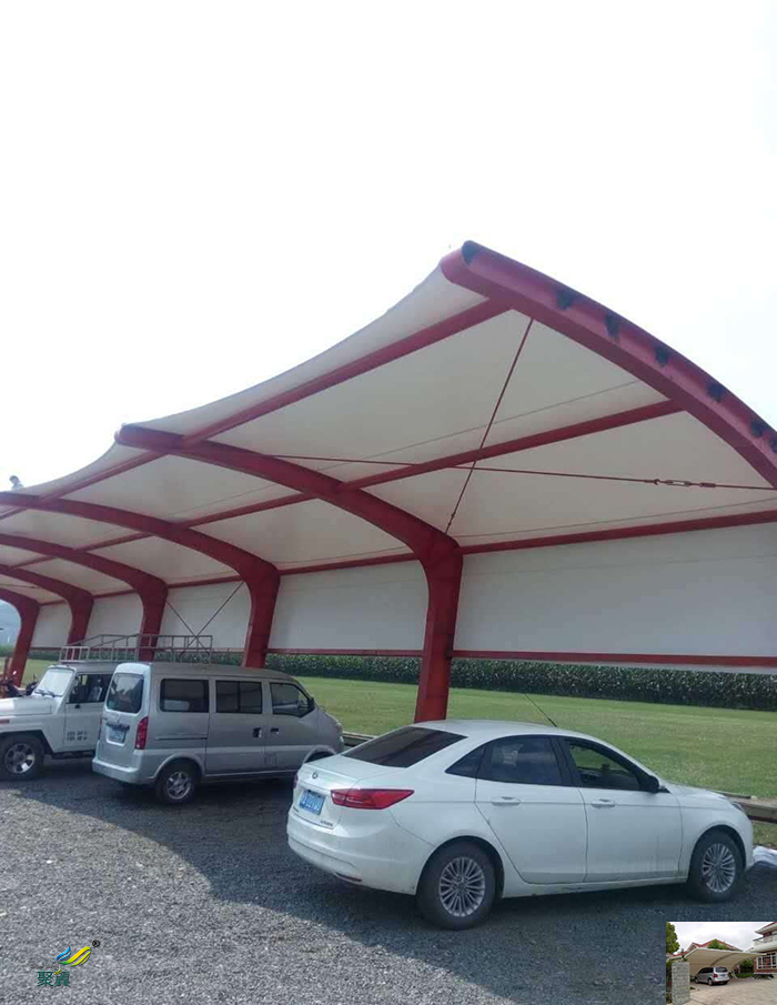 2、膜結構車棚適用范圍:社區學校、商業廣場、體育館、工廠、汽車4S店、旅游度假餐桌、政府機構等。