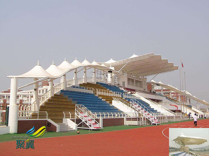 膜結構看臺可使建筑師設計出各種張力自平衡、復雜且生動的空間形式。在一天內隨著光線的變化,雕塑般的膜結構通過光與影而呈現出不同的形態。