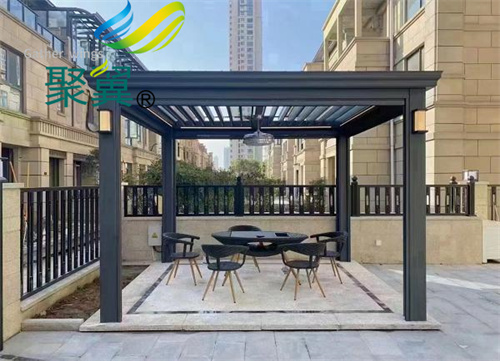 除了涼亭,電動遮陽防雨百葉涼亭,葉片采用鋁合金材質整體擠壓成型,葉片表面帶有水溝,在葉片關閉時可引導雨水進入兩頭的引水槽,再接入排水管。一個潮流專業的設計,為你的院子遮風擋雨。