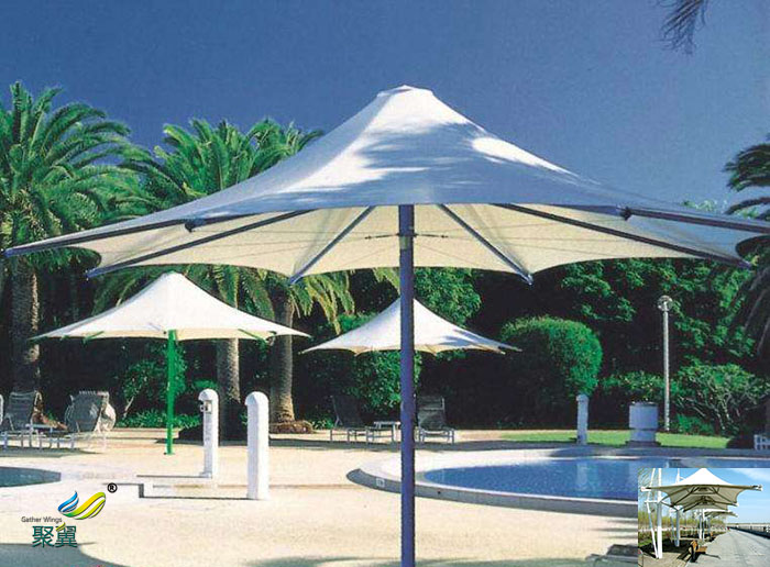 上海園林景觀膜結(jié)構(gòu)廳采用防腐、防嗮、防污染的環(huán)保材料膜結(jié)構(gòu)膜材,既美化景觀,又保護(hù)了生態(tài)環(huán)境。