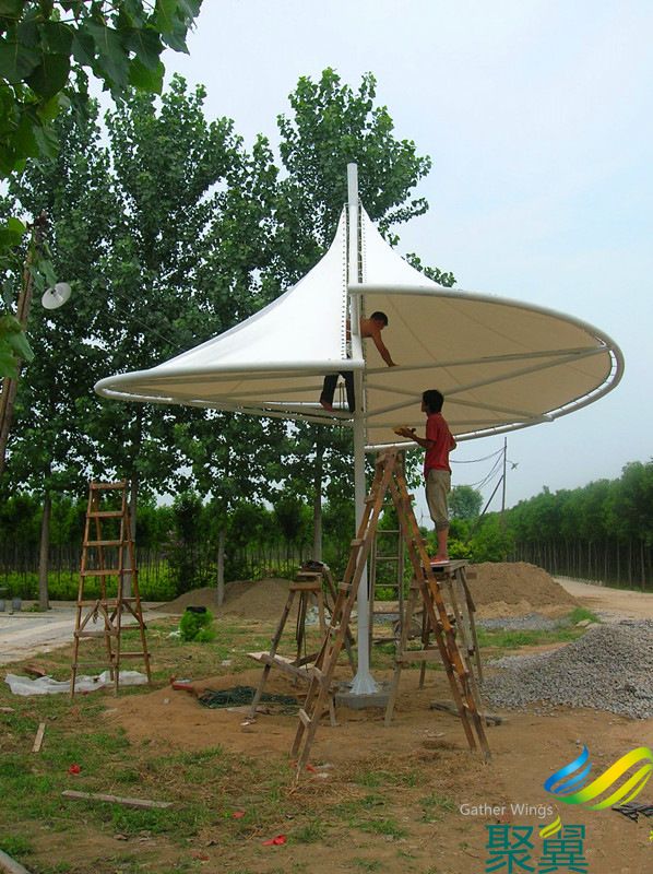 膜傘的結構自重輕,具有良好的造型和自潔性,施工簡單快捷快捷,適合以下各種場所使用:大型體育館、門廳、公園、商業街、高檔小區等。