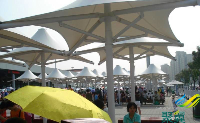 2.膜材料的膜傘具有防火、抗紫外線(90%)、隔熱等功能,是人們休閑的娛樂必備建筑。