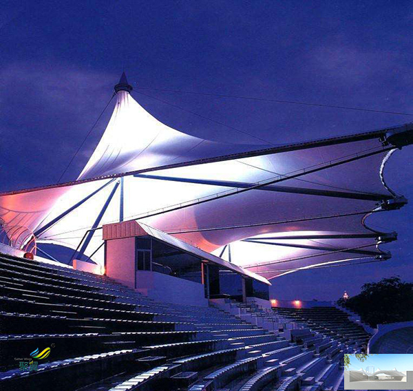 白天,陽光透過膜面使建筑物內(nèi)充滿夜自然漫射光。夜晚,室內(nèi)燈光透過膜面給空增添了夢(mèng)幻般的夜景。當(dāng)膜結(jié)構(gòu)用于體育館、娛樂設(shè)施時(shí),可以實(shí)現(xiàn)全天內(nèi)的舒適相結(jié)合的理想的商業(yè)空間。
