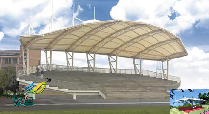 膜結(jié)構(gòu)看臺是膜結(jié)構(gòu)材料近年來應(yīng)用的一個(gè)新領(lǐng)域,膜結(jié)構(gòu)建筑能很好的籠罩全部的看臺,膜結(jié)構(gòu)的張拉樣式使得建筑的空間跨度變的更大,同時(shí)能縮小建筑的結(jié)構(gòu),建筑的整體重量減輕,這樣施工就會變的簡單安全。這些都是膜結(jié)構(gòu)被廣大用戶選擇的關(guān)鍵因素。膜材的表面都有一種涂層,涂層是為了預(yù)防灰塵雨水的影響,起到保護(hù)膜結(jié)構(gòu)使用年限的作用。